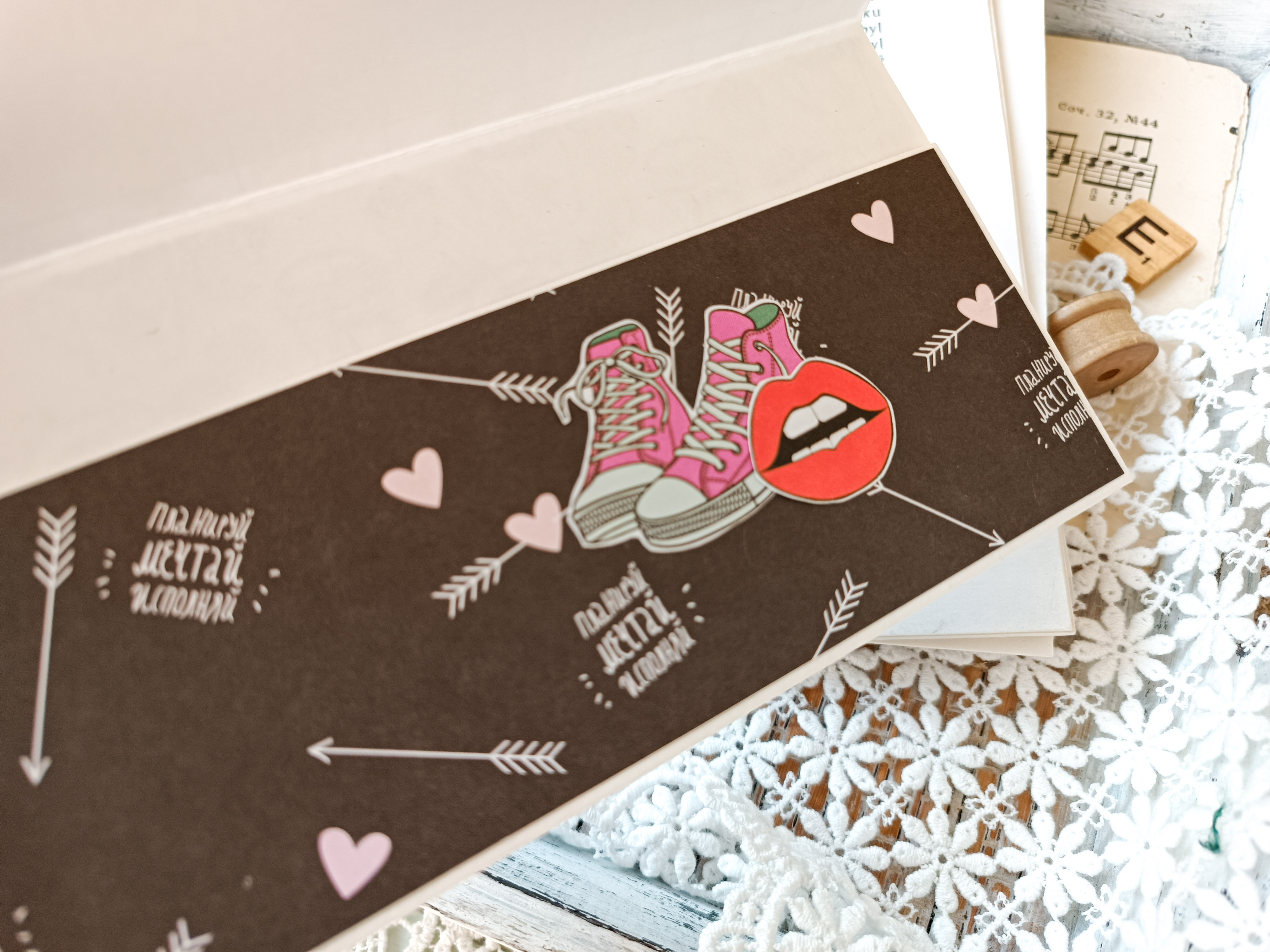 С доски взяла красный, кеды, розы. И сложился симпатичный, мне так кажется, конверт для денег с мотивирующей надписью. Делай, что любишь) И девушка делает сложный выбор между удобными кедами и роскошными туфлями)) В общем, смысл закрыт в этой работе)) А что выбираете Вы?)