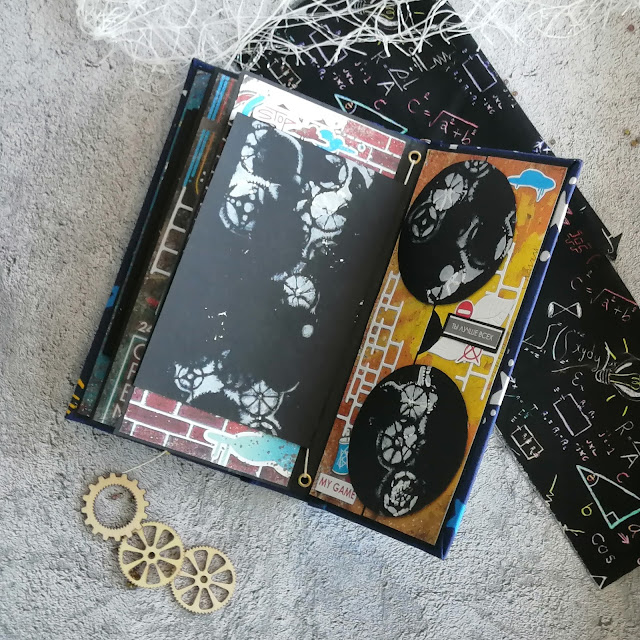 Подложки для фото оформила трафаретом и сделала несложные конструкции.